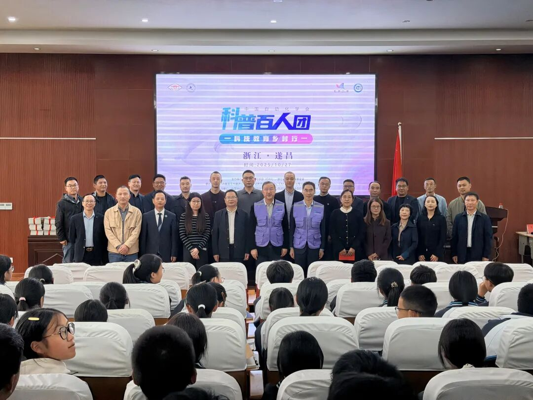 2025年10月27日,中国自动化学会(CAA)携手浙江省智航教育基金会、遂昌县教育局共同举办的“CAA科普百人团—科技教育乡村行・浙江遂昌县”公益活动暨科普书籍捐赠仪式圆满举行。中国自动化学会理事、中国自动化学会智慧教育专业委员会主任、浙江工业大学教授王万良,中国自动化学会普及工作委员会委员、东南大学教授陈夕松两位百人团专家,在遂昌县民族中学和遂昌县后江民族小学开展了四场科普报告,为当地青少年讲