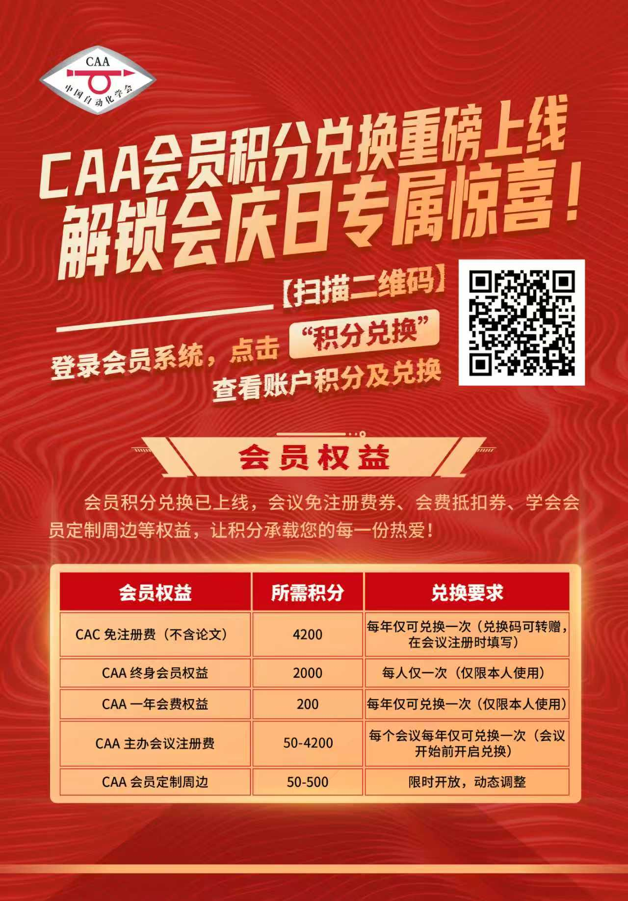 在中国自动化学会(CAA)会庆日的喜庆氛围中,备受期待的会员积分兑换惊喜登场!自新版会员系统上线以来,每一位会员都用实际行动书写着与CAA的深厚联结——您热情推荐新伙伴加入学会大家庭,让温暖不断传递;您认真分享个人在自动化领域的成长与成就,为同行带来启发;您主动投身学会工作,用担当助力行业发展......正是这份热忱与付出,让会员积分不断累积,也让学会愈发充满活力!