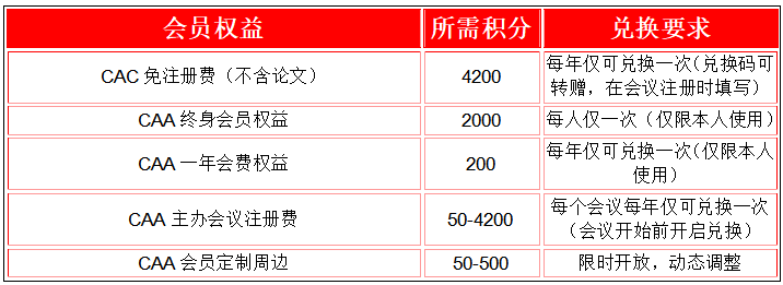 CAA积分兑换指南