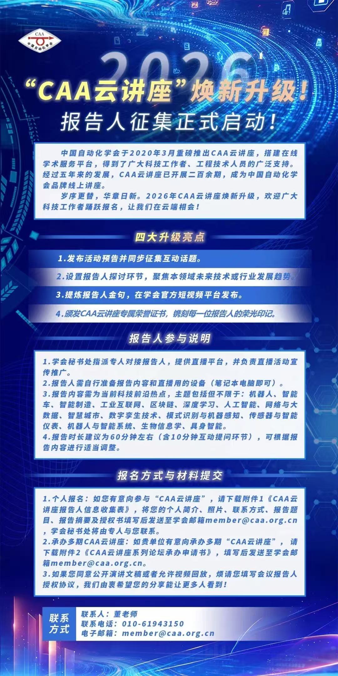 岁序更替,华章日新。2026年CAA云讲座焕新升级,欢迎广大科技工作者踊跃报名,让我们在云端相会!