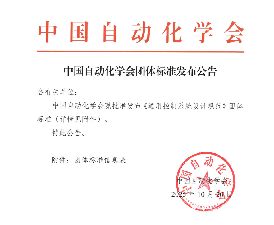 中国自动化学会团体标准发布公告