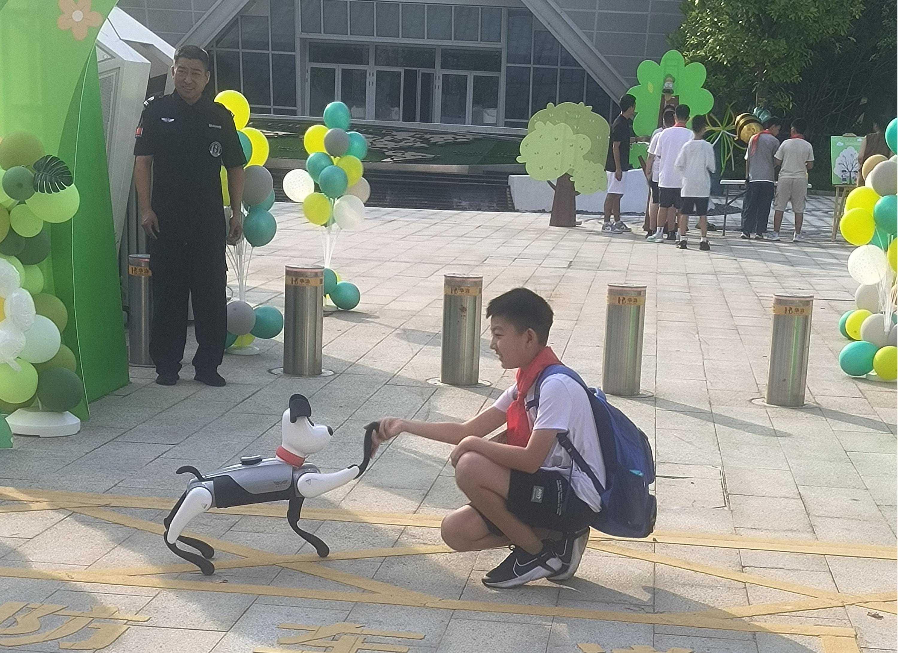 在机器狗互动环节,同学们被“小白”的超能力深深吸引。通过简单的语音指令,他们就能让“小白”做出握手、摇尾巴等动作,甚至还能让它进行天气预报。这种亲密的交互不仅让同学们感受到了人工智能的魅力,也让他们意识到,未来的科技并非遥不可及,而是可以成为我们生活中的好伙伴。欢声笑语中,孩子们的好奇心被彻底点燃,对未知世界的探索欲望也随之萌发。