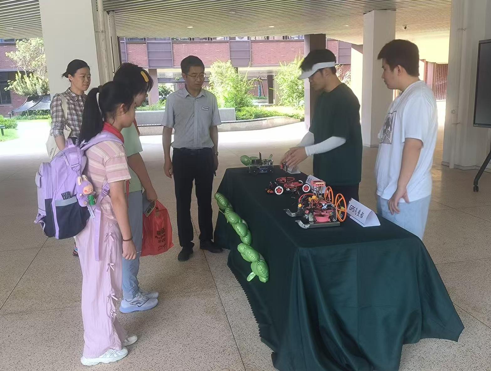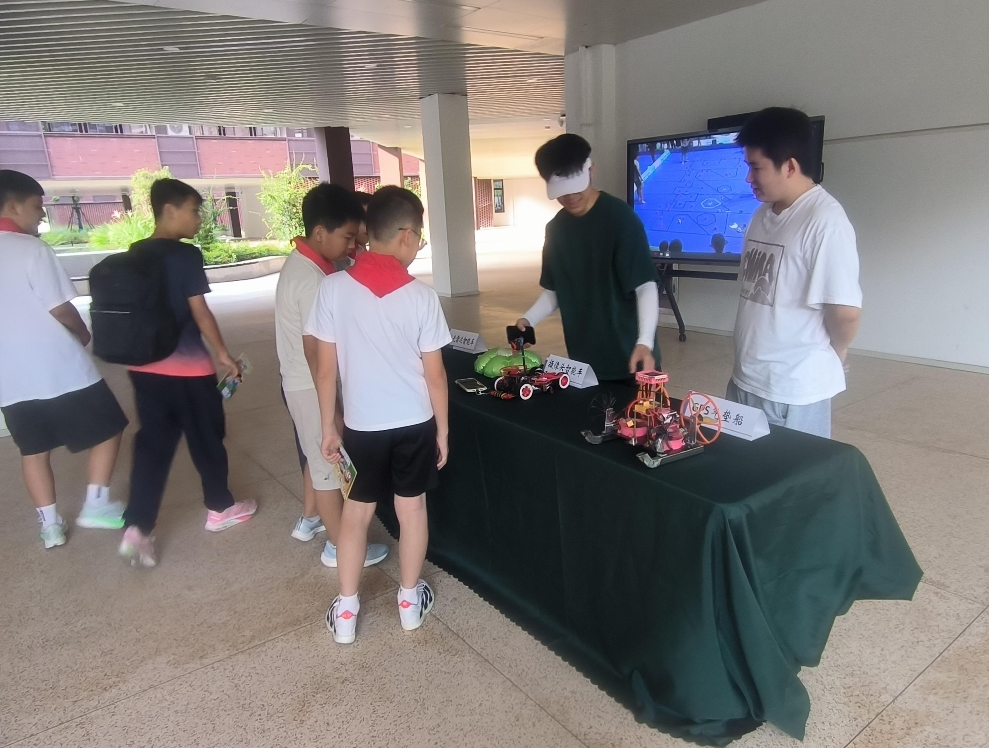 此外,CAA浙江工业大学学生分会的成员们还带来了他们的骄傲之作——在全国大学生智能车竞赛中荣获一等奖的比赛用车。团队成员们向同学们详细介绍了这些看似简单的模型车背后的复杂原理。从如何通过传感器“看”清赛道,到如何用算法控制车辆精准转向,每一个细节都充满了智慧的光芒。同学们围着这些高科技小车,听着学长们深入浅出的讲解,对自动驾驶、人工智能等前沿技术有了更直观、更深刻的理解,一颗颗科学的种子在他们心中悄然种下。